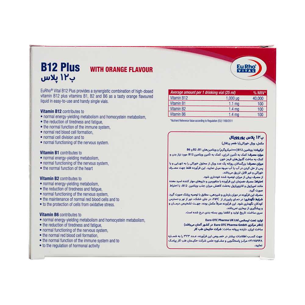 ب 12 پلاس یوروویتال، حاوی ویتامین B12، ویتامین B6 و ویتامین های B2 و B1